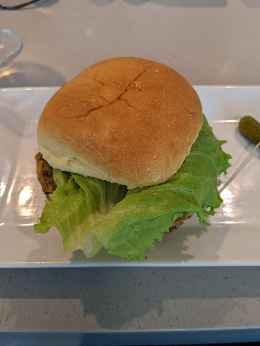 Nice place to stop, get a bite to eat, and charge your device. They serve a huge area in the terminal with plenty of tables. The food, especially the burgers, are fresh and tasty. The fries are also great. All the staff were working super hard during the afternoon. Our server was very friendly and attentive. Great place!